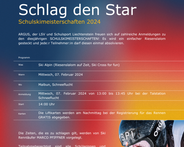 In diesem Jahr fordert FL-Skistar Marco Pfiffner die Schülerinnen und Schüler heraus!